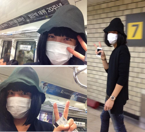 公開された写真に写ったチャン・グンソクは、カツラとマスクで変装して