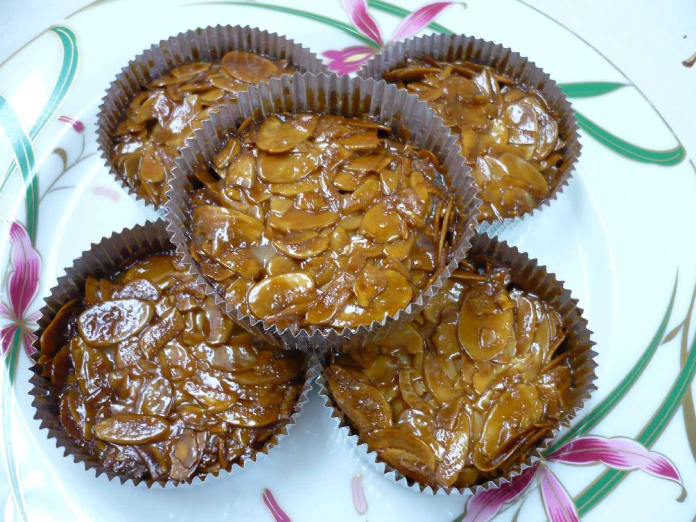 サブレ生地の上に、アーモンドたっぷりのキャラメルを載せて焼くクッキーです。
