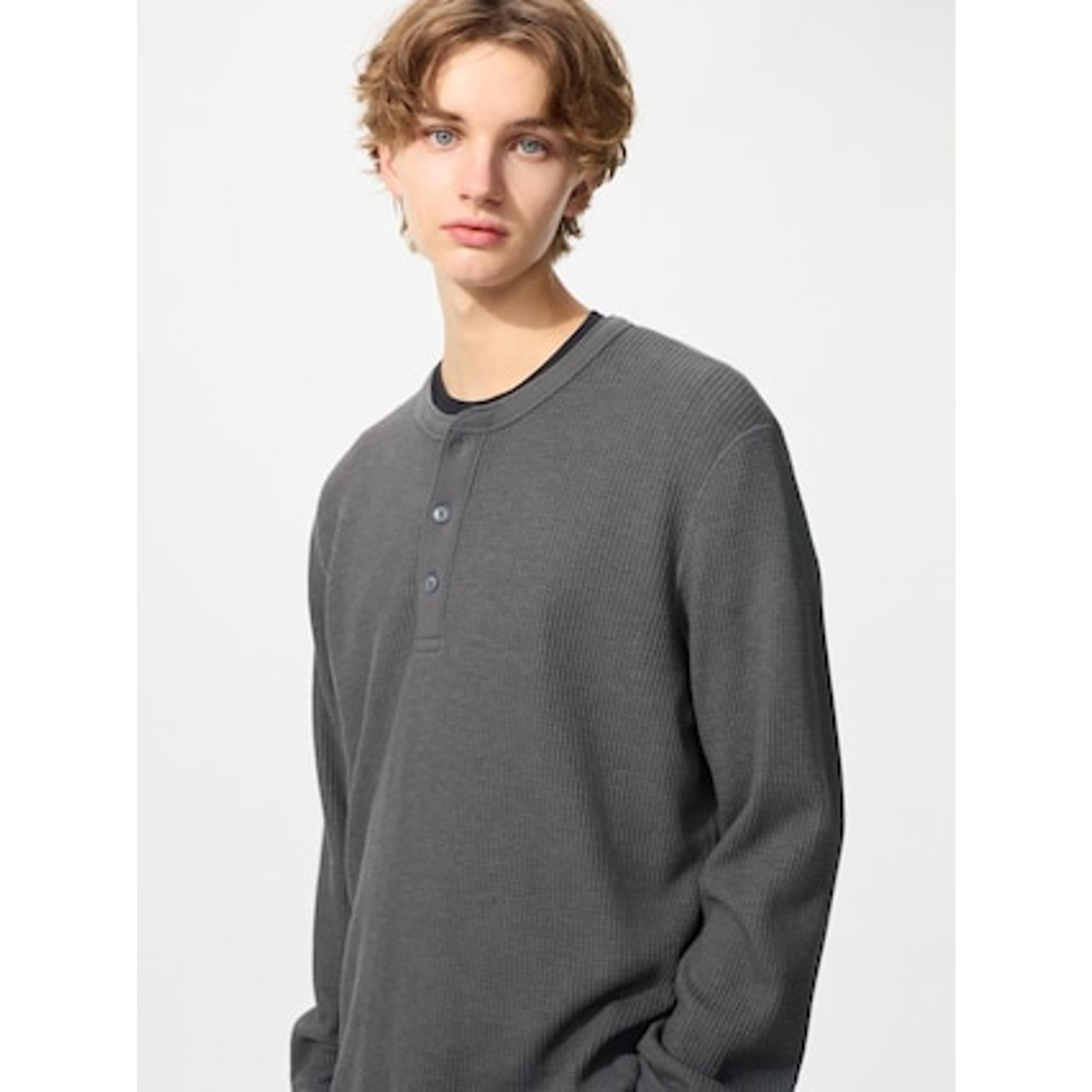 ユニクロメンズのワッフルヘンリーネックを合わせました。