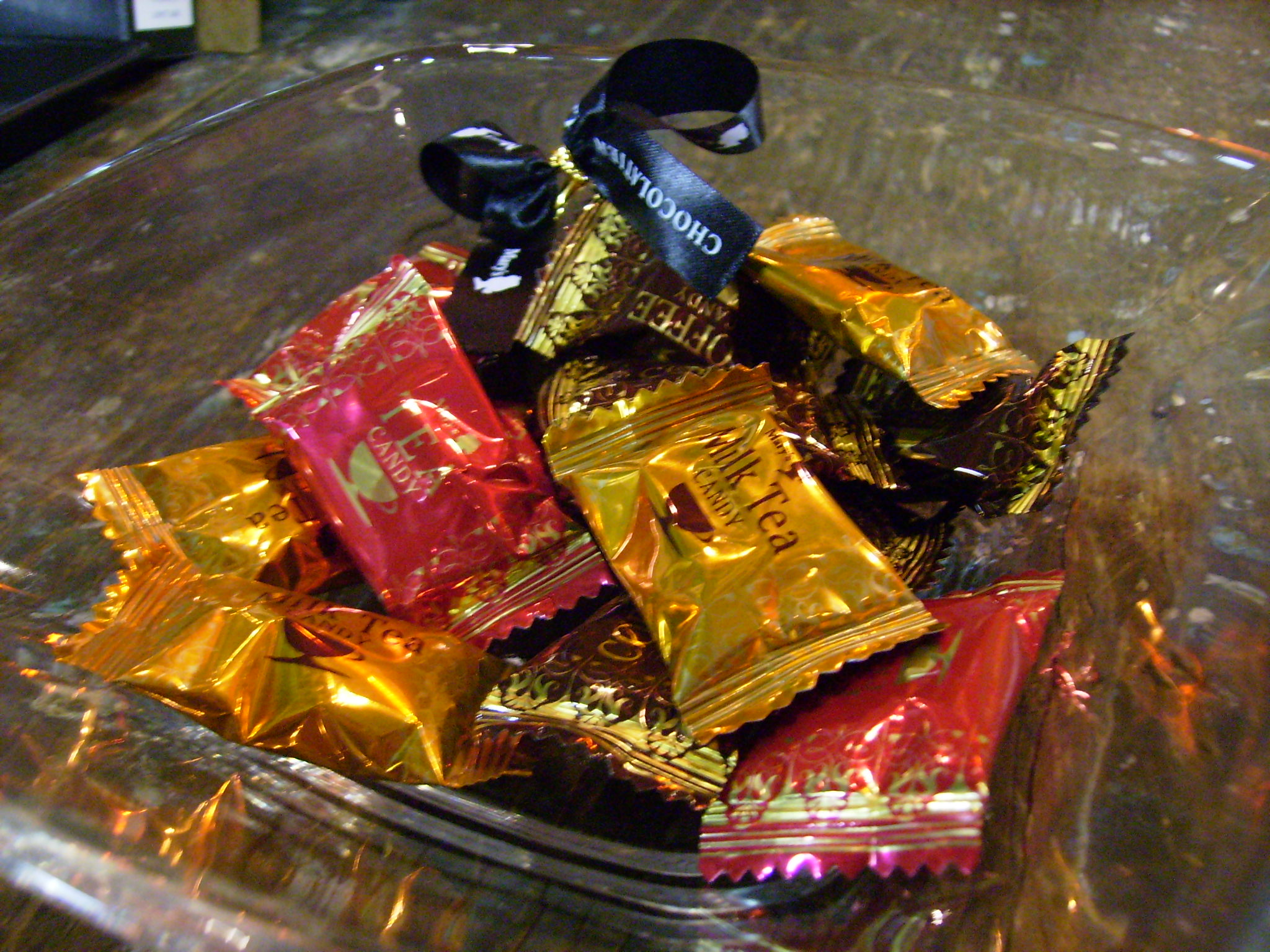 差し入れっ♪♪今日はデザイナーさんから可愛らしいラッピングに包まれた飴を頂きましたぁ!その名も『ハードキャンディ』。ミルクティー、コーヒー、紅茶の三種類の味!もちろん三種類とも頂きました~!その中でも私はミルクティーがおススメです!ミルクの味が濃く、ほのかに紅茶が香りますっ~。おいしい☆いつもいつもありがとうございます!働いたあとのデザイナーさんからのキャンディーを一口~。和みました!(笑)