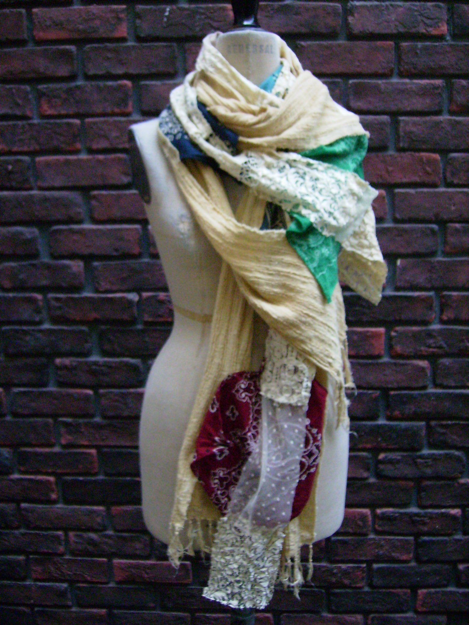 ~Prat2~まだまだ続きますバンダナシリーズ♪♪♪今日ご紹介するのは、『バンダナフラッグストール』!!!ストールを広げてみると、いろんな色のバンダナが旗の用に横に並んでいて、首に巻いてみるとレース&バンダナが絡み合って凄く可愛いんです!!!色んな巻き方ができるので、自分なりの巻き方を発見してみて下さい~♪