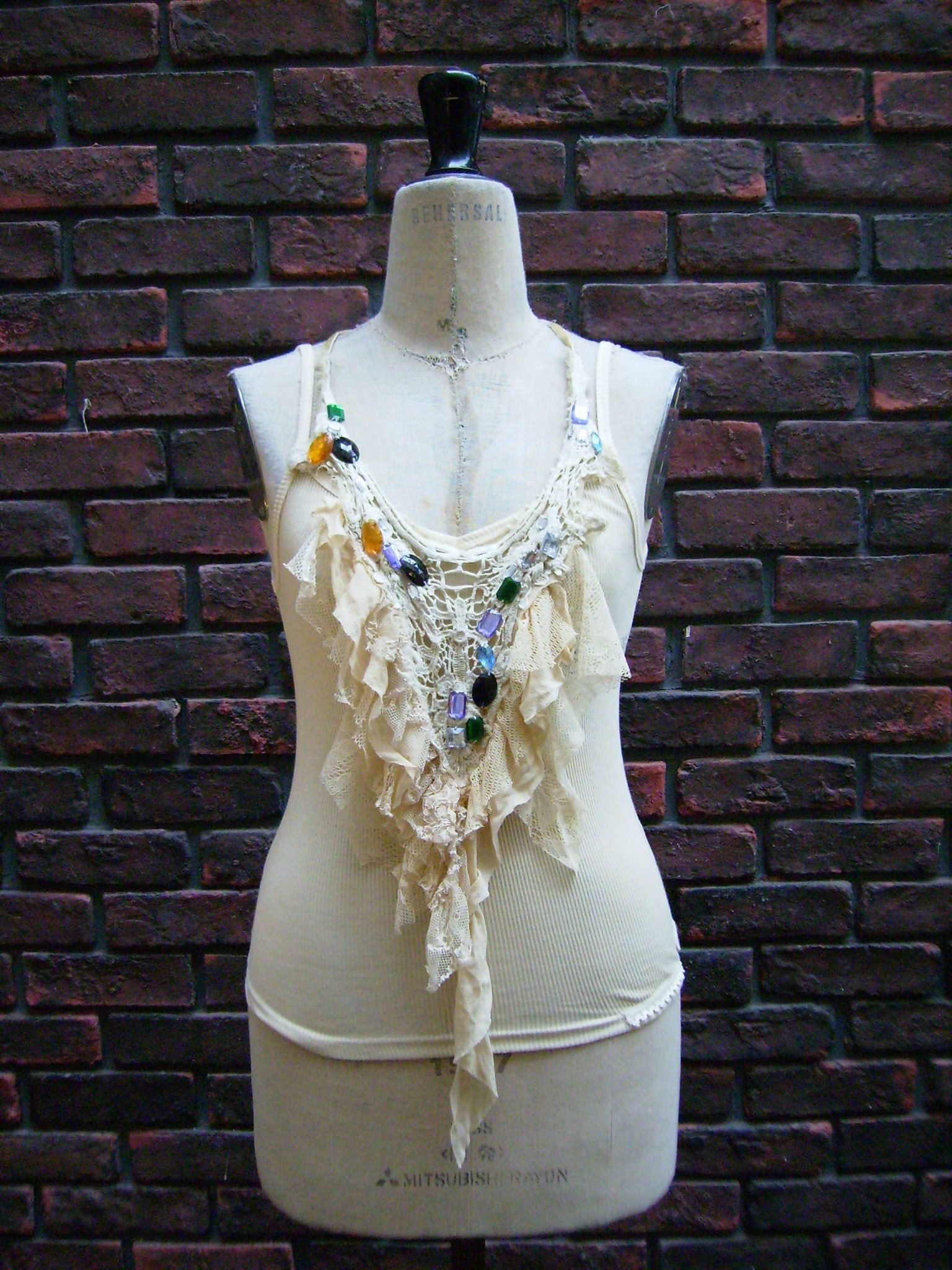 夏に1枚♪日が落ちる時間も長くなり、夏に近づいてるんだなぁ~と感じるこの頃♪夏に1枚どうでしょうか。キャミソールタイプのトップス♪胸元にはなんとレースのネックレスがついており取り外し可能なアイテムです!取り外し可能なため色々なスタイルに活躍できるアイテムではないでしょうか!一番はこのキャミソールとセットでの着こなしが可愛いです♪カラーはブラック、ベージュの2色展開、数量限定の枚数になります!要チェックです♪