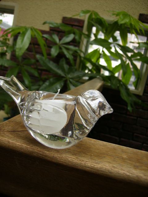 頂き物☆いつもカオススタッフを可愛がってくれる方から、こんな可愛らしいものを頂いちゃいました!小鳥のキャンドル♪クリアな小鳥の形のガラス☆幸せを運んでくれるキャンドルらしいのです!!どこに置こうかと迷っていましたが、幸せが流れてくるようにと表の入り口に飾っています♪緑が生い茂る観葉植物の中にキラッ☆と光る小鳥の形がとても可愛いです♪