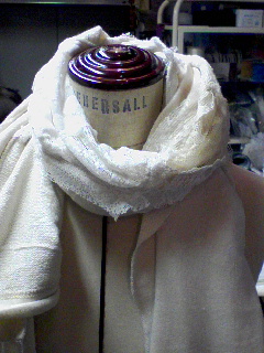 スウェットストールが・・・。新型のストールを作っております。スウェットの心地よい生地間とねじれた雰囲気が可愛らしいです。BGEとGRYに染めてみようと思っております。もう少しで完成です。次の展示会に出しますので、詳細は展示会以降に・・・。