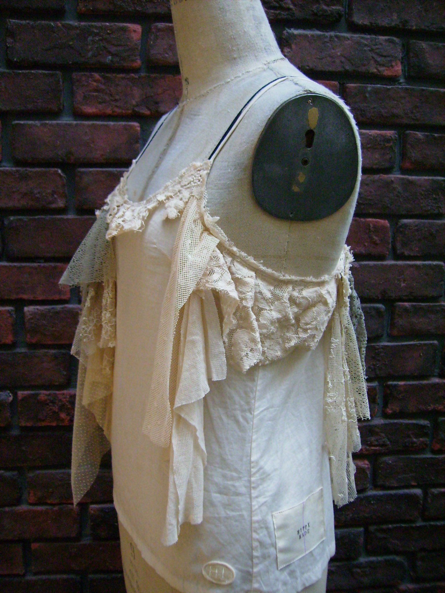 お花畑*先日のベリーフルーツキャミソールに続いて、お花畑をイメージしたキャミソールのご紹介です。お花に蝶がとまっているような、お花が風でなびいてるような、真夏の昼下がりを感じさせてくれますよ。風合いも紅茶に染めたレースのアンティーク感がまたたまらなく可愛いです。キャミのストラップの紺と天然染めのグレーのレースもスパイスになって効いてますよ。レースの分量感も甘すぎず、大人なキャミソールです。カラーBGE/GRYBGE/RED ストラップ(パープル)