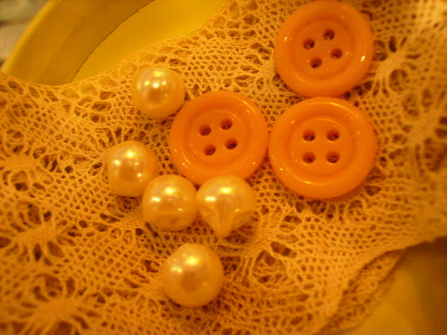 BOTAN☆part2以前もご紹介しましたが、またまた可愛いボタンが仲間入りです♪サーモンピンクのボタンはフランス製のもの。しかも、、、ガラスなんですよ~☆プラスチックのボタンに比べ光沢があり、そして何よりも互いが重なった時に鳴る音が素敵なんです♪ガラスなので風鈴に近い音がするんですよ~♪お隣の一見真珠かと思うのもボタンなんです♪ほんと可愛い!!またまた魅力的なアイテムが生まれそうな予感です☆