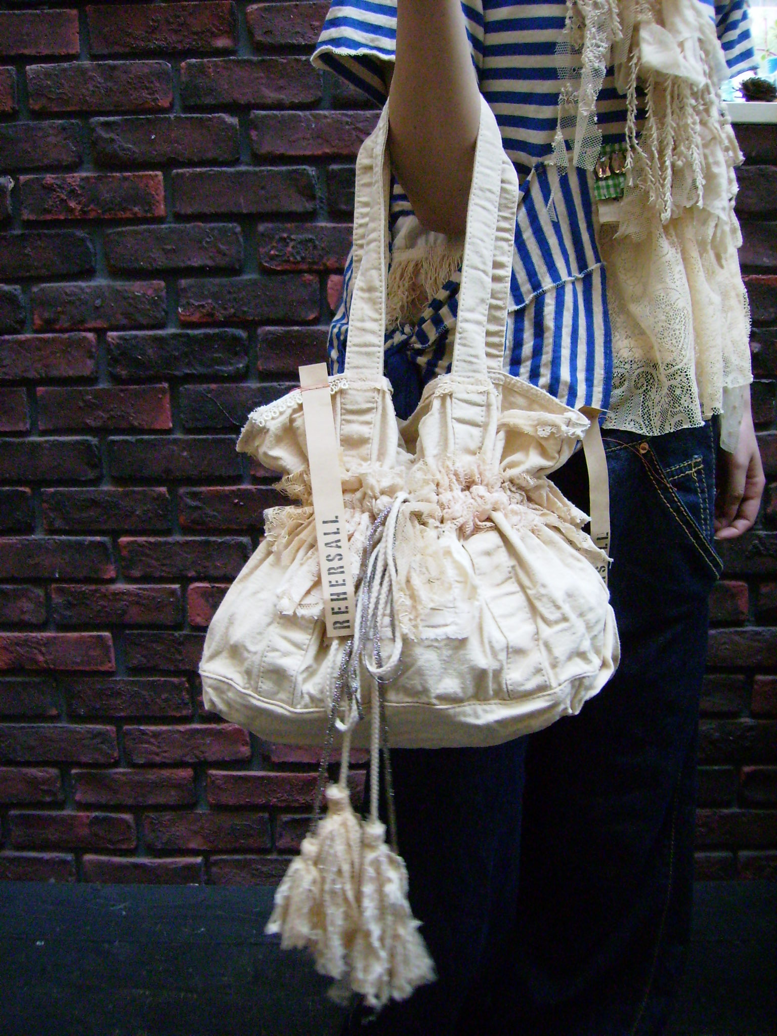 今日は大人気の新作トートバックを手に持ったところを