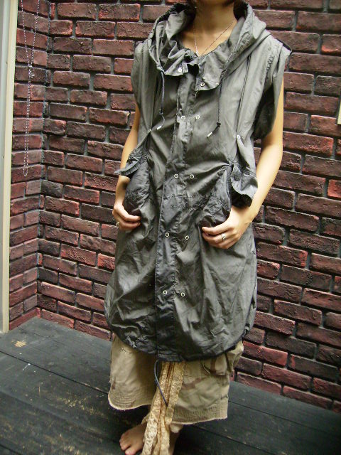 GRY!!!見てください!半そでのコートですよ!メチャメチャ珍しい♪ベースはモッズコートなんです。あちらこちらにパチパチ留めるボタンが沢山ついててざっくり着てもらうのが激カワ!!!秋っぽいお洒落を楽しみたい!!!けど。。。まだまだ暑いこの時期にピッタリのアイテムです!!!冬はざっくりニットの巻物などを合わせてもいいのではないでしょうか~♪