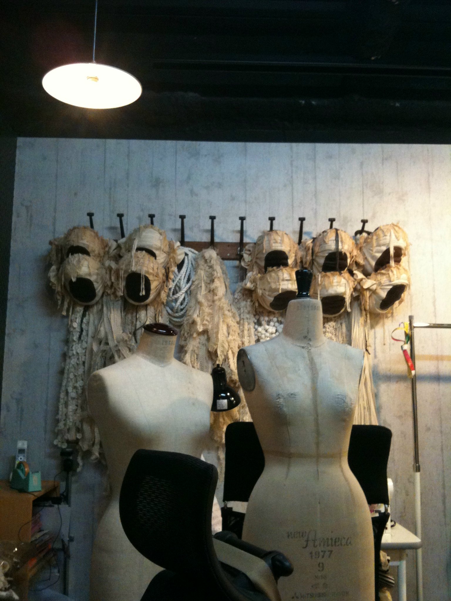 内装です。3階のファクトリー部分の写真です。レースとカゴが一緒に並んでいます。天井からぶら下がっているカゴもあるくらい。これまでのファクトリー以上に機能的に、可愛くなっています。なによりも窓が大きいのがいい!!そとの明かりがものすごっく美しいんです。もっともっと素敵なファクトリーにするのだ!と皆で意気込んでいるのです。