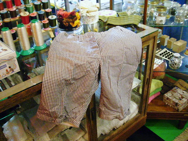 パンツリメイクコックパンツのリメイクです。メンズ用に制作していましたがこのたびレディスサイズで作ってみました。結構可愛いと思います。明日、スタッフにはいてもらって写真をアップしてみようと思っています。チェック柄で、薄手の生地なのでこれからの時期は履きやすいと思います。ワンウォッシュしているので、くたくた感が可愛らしさを演出していますパンツもこれから色々とリメイクしていきたいですね。