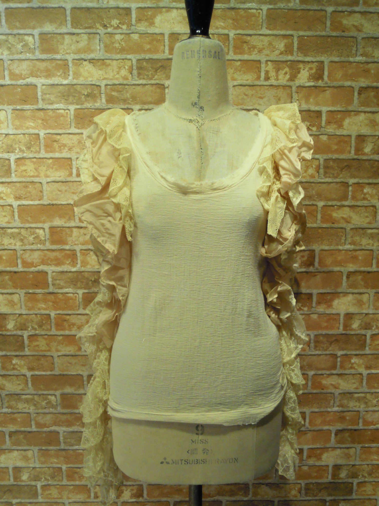 ガーゼフリルTシャツ出張から社長とばっしー店長が帰って来ました☆おかえりなさい~!!今回もいろいろかわいいパーツなどを買って来てくれましたよ♪本当にお疲れ様でした☆そして今日はこちらのガーゼTシャツをご紹介!創りはシンプルですが、なんといっても!袖のフリルが特徴です!!ボリュームがあってとてもかわいいです♪また春らしい色合いとフリルのバランス感がなんとも言えません!!!ボリュームたっぷりです♪♪気になる商品がある方はこちらをクリックしてください。通販希望の方はChaos BohemiaHPから