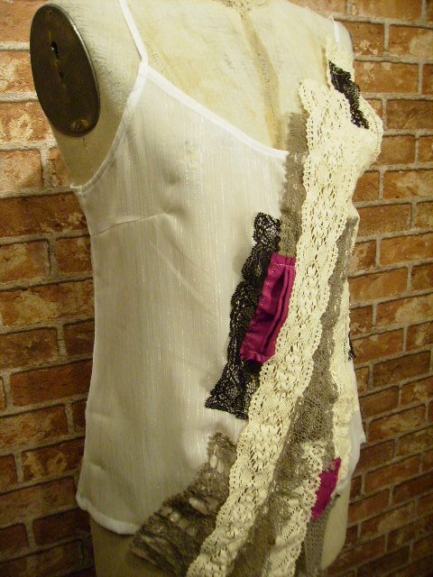 キャミソール♪今日はかわいいキャミソールのご紹介です☆こちらはベースのキャミソールに、紅茶とグレーに染めたレースとブラックのレース、そしてポイントにピンクにキュプラを施したお洒落なキャミソールです♪レース付けのバランスがなんとも絶妙です!!色使いもすきです!!おすすめです~♪♪気になる商品がある方はこちらをクリックしてください。通販希望の方はChaos BohemiaHPから