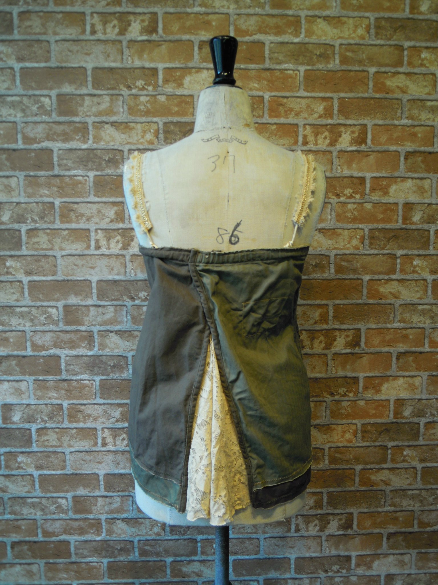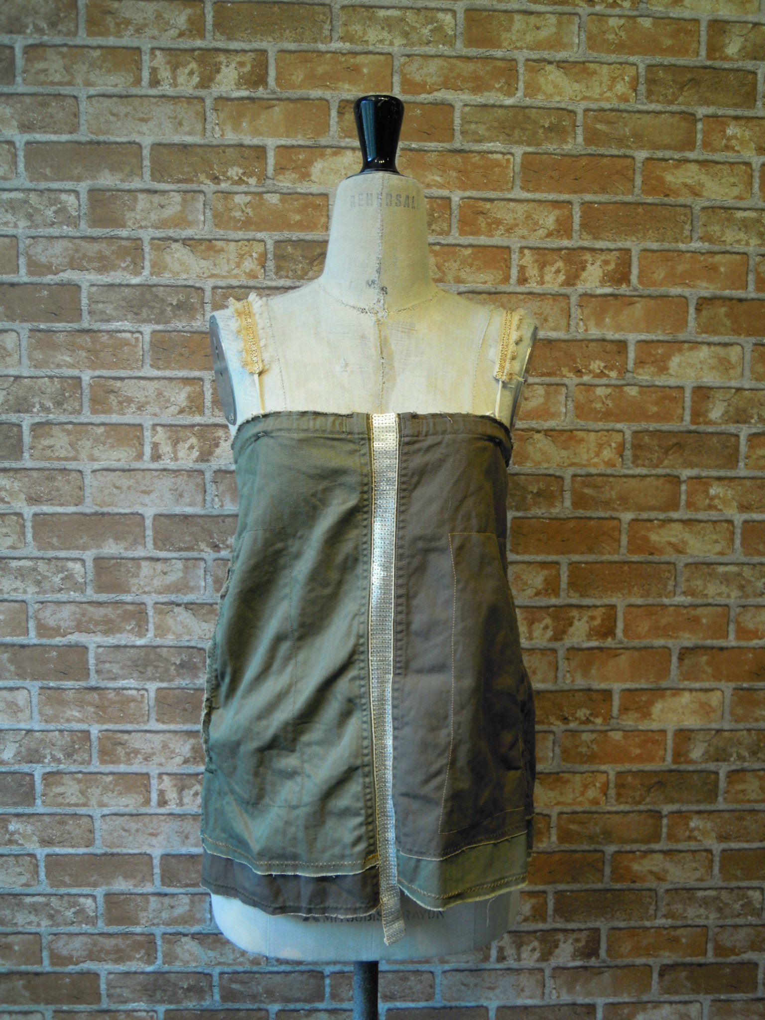 よく見るとパイピングしている生地もパンツのハギレだったり