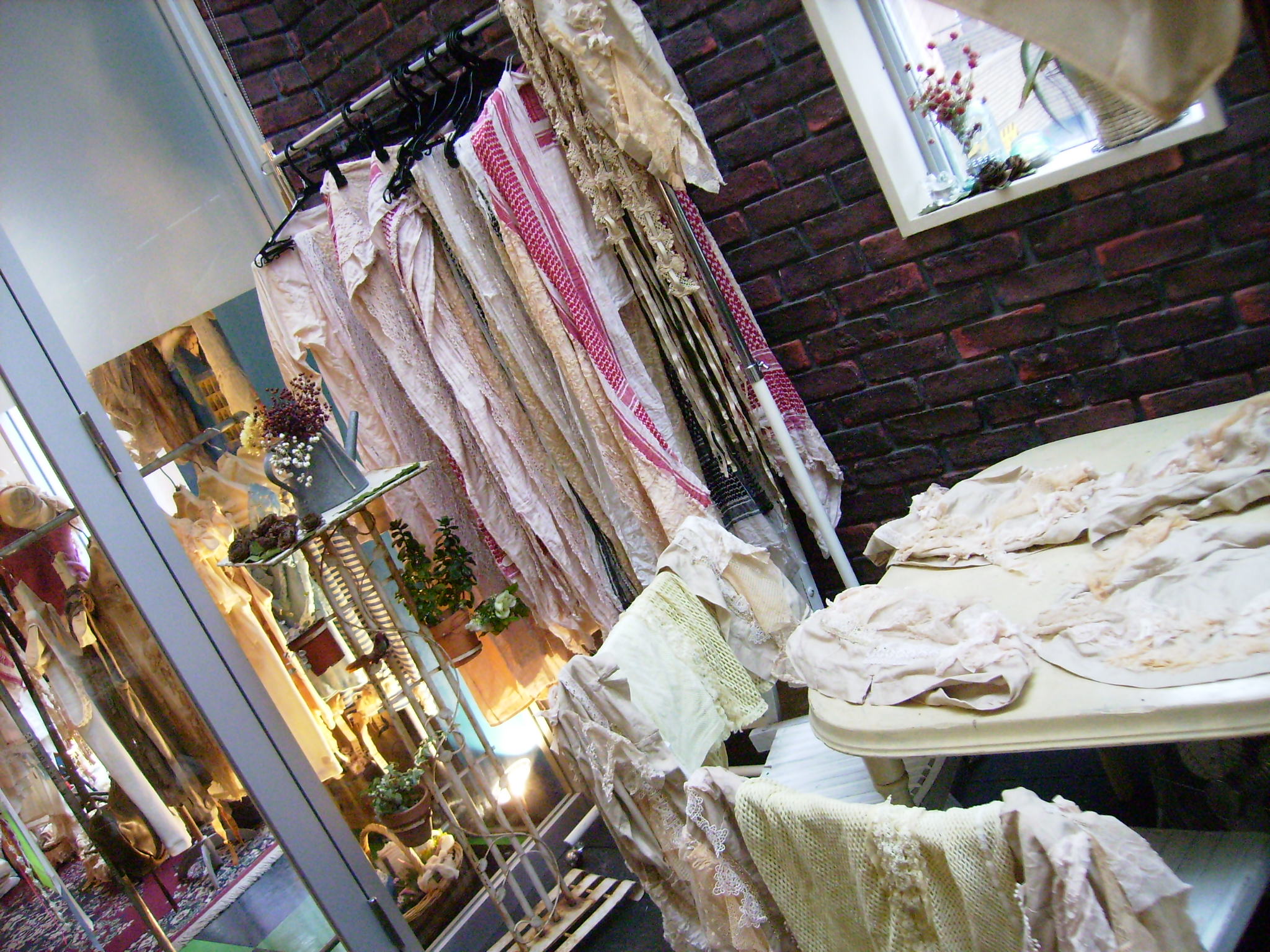 納品前☆納品前になると・・・いつもカオスのテラスはこんな感じで染めたものを乾かすために、並べられており、洗剤の香りが漂っています。洋服のお店では見ない光景ですが、工房兼ショップとしているカオスでは、この光景が日常になっています。不思議な感じですよねっ♪