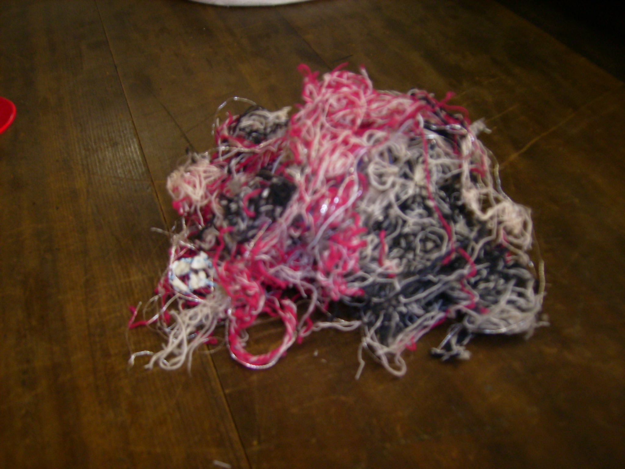 『これ!なぁ~んだっ!!』黒と赤、白の配色といえば、リハーズオールアフガンストール!でもこれはちょっと違う。モジャモジャしてますねっ(笑)。そう!アフガンストールが完成するまでに出てくる糸くず達であります!!この糸くずの山を撮っていて、1からストールが完成するまで、正真正銘のハンドメイドだと実感した。今日も一本一本チョキチョキと作業してました~。毎日毎日がホントに細かい作業。でも街で巻いてる人を発見すると、めちゃくちゃ嬉しい!!もっと頑張ろう!!ありがとう~!と思う瞬間でもあります。