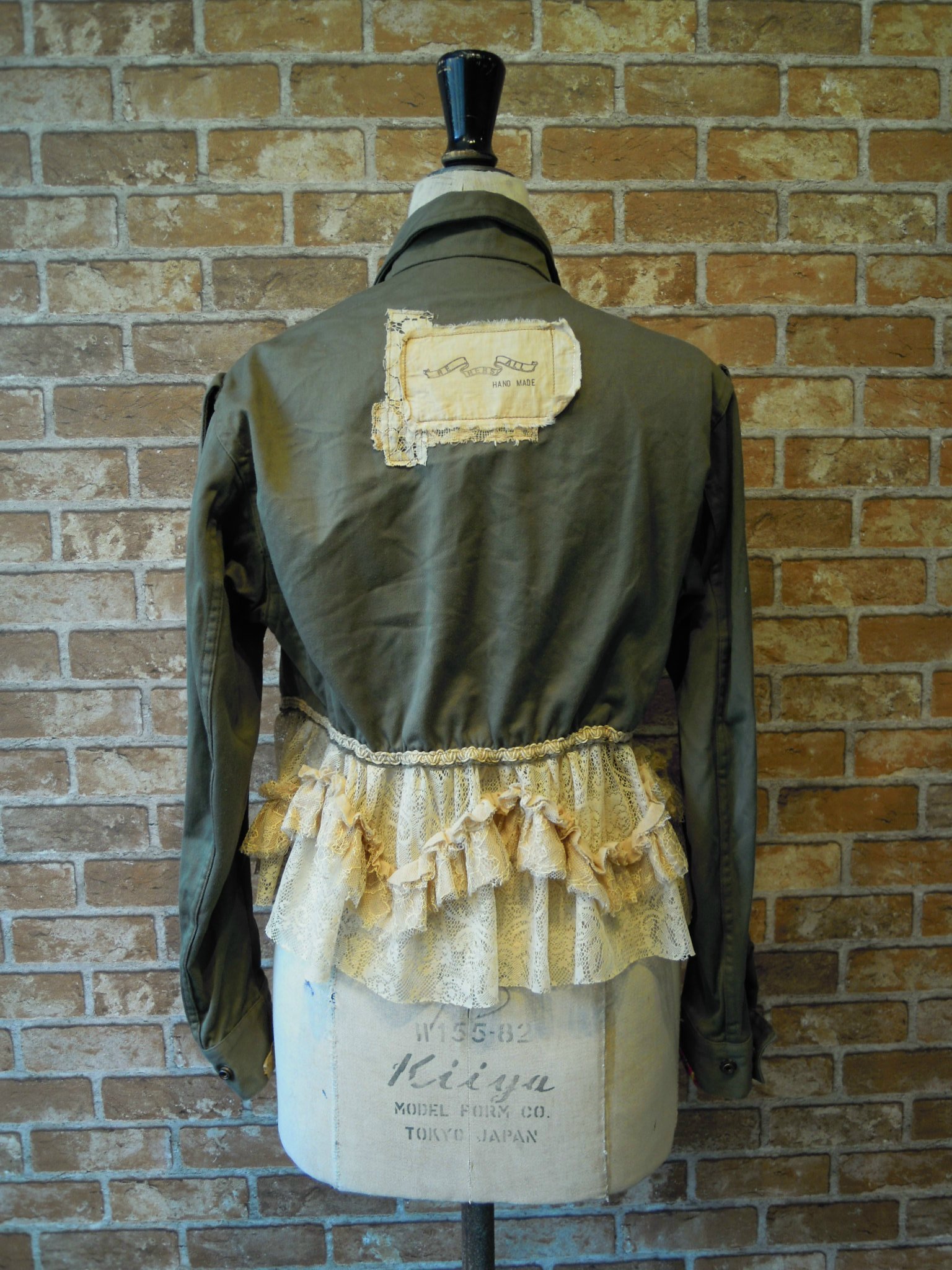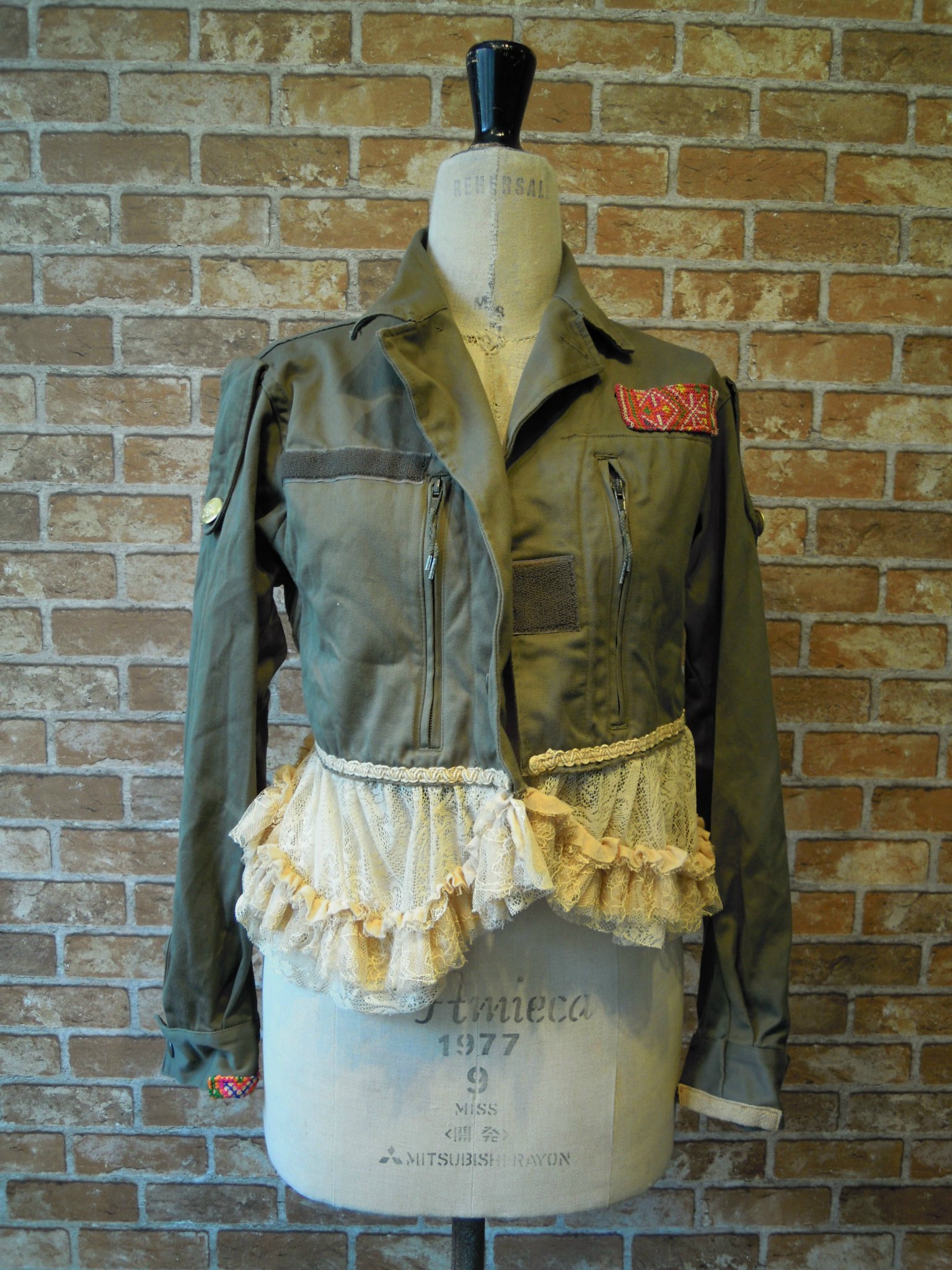 ショートジャケット☆軍物ベースのジャケットをポケット下でカットカットした裾にレースのフリルを付けたショートジャケットです先日のコーディネート写真で羽織っていたのはこのジャケットなのですワンピースの上にさらっと羽織るだけでお洒落度がぐっと増します細かい装飾にも是非チェックしてみて下さいねヽ(・ε・)人(・ε・)ノ 通販希望の方はChaos BohemiaHPから