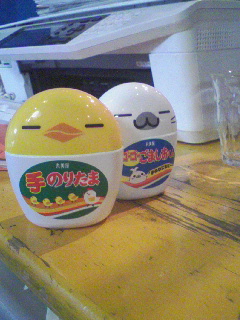 さしいれここ数日、深夜の作業が続いており、いろんな方が色々と差し入れを持ってきてくれます。ここ数日、パン、牛乳、手作り生キャラメル、ロールケーキ、おむすび、たい焼きプリンなどなど・・・。ウチのスタッフ大喜びです。その中でも変わり種は「ふりかけ」。入れ物がかわいい。「てのりのりたま」と「ごましおくん」夜中なのに、大騒ぎです、はい。