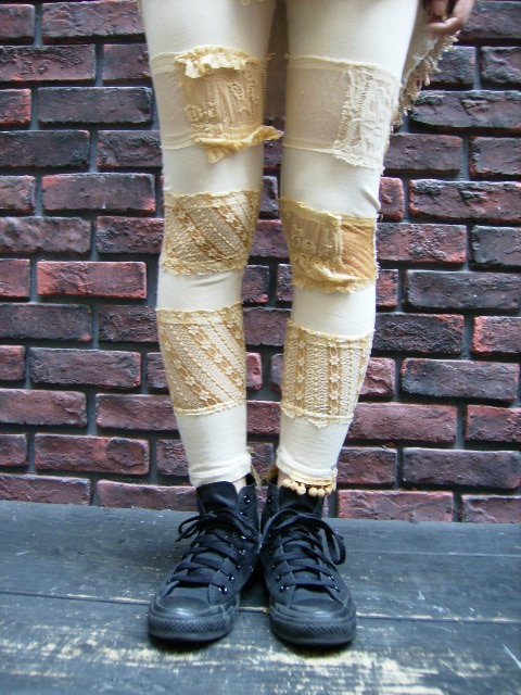 レギンス♪ZOZOTOWNのTorchで大好評なのがこの『レースパッチワークレギンス』!!!黒は既に品切れとか・・・☆またまた手の込んだREHERSALLらしいレースのパッチワークが片足に3箇所はさんであります☆伸び縮みするレースを使ってますので、はきやすいですよー♪♪♪ブーツの下からチラッとこんな可愛いレギンスがのぞくとグッときちゃいますよねー☆ぜひGETしてくださいー!!!気になる商品がある方はこちらをクリックしてください。通販希望の方はChaos BohemiaHPから