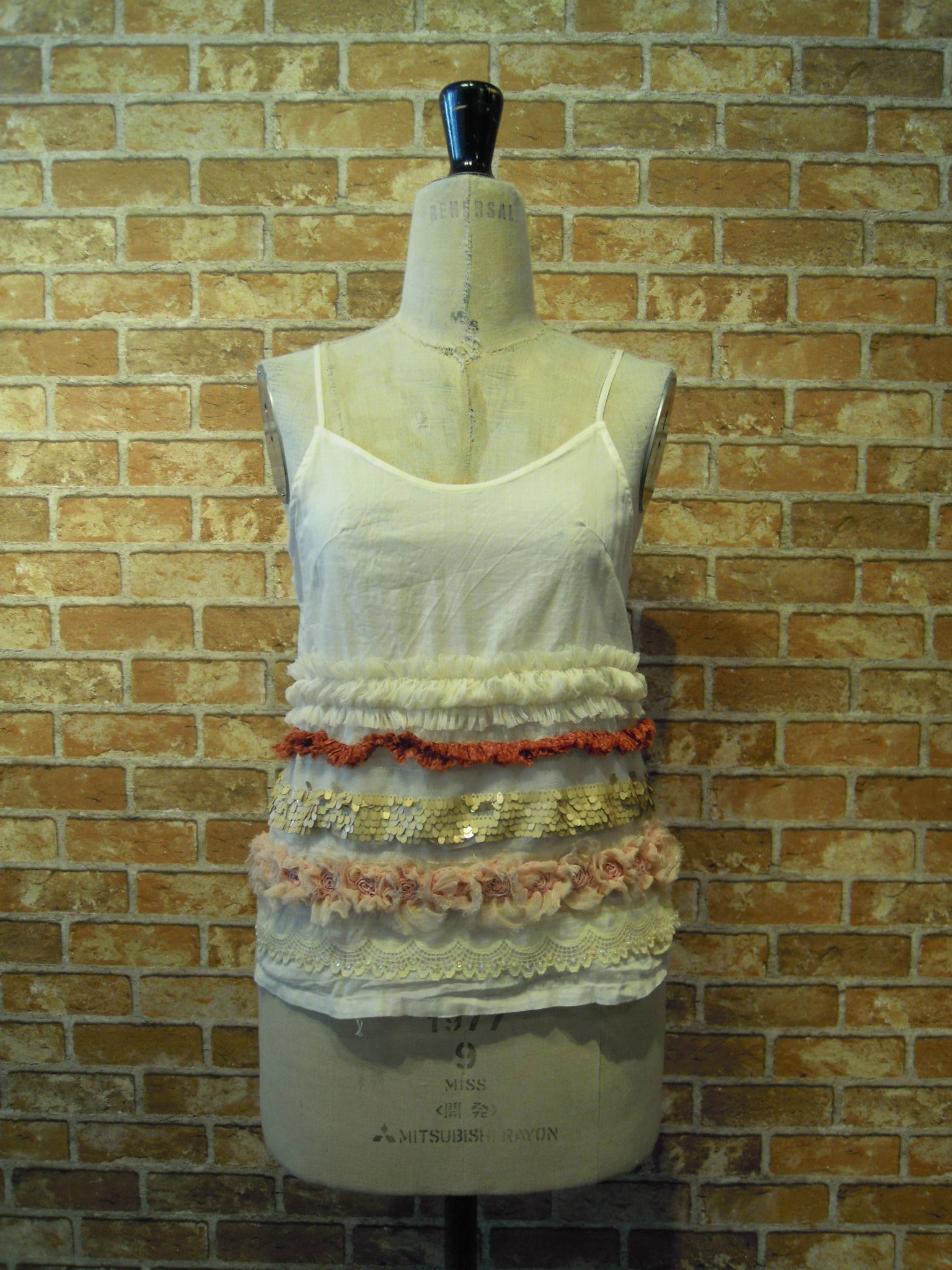 キャミ♪早くもっと暖かくなってかるい洋服でお出掛けしたいですねTシャツの上にサラッと重ねて可愛くできちゃうキャミの紹介です段々に可愛いモチーフが付いています普通じゃ終わらせないのがREHERSALLひとつひとつ可愛いテクニックを入れております細かいところまで要チェックです気になる商品がある方はこちらをクリックしてください。通販希望の方はChaos BohemiaHPから