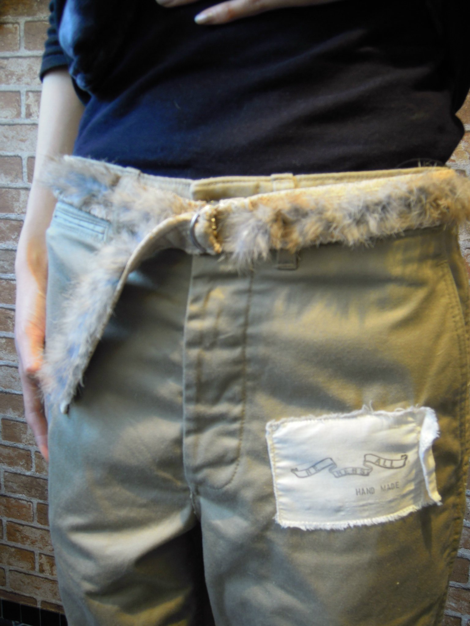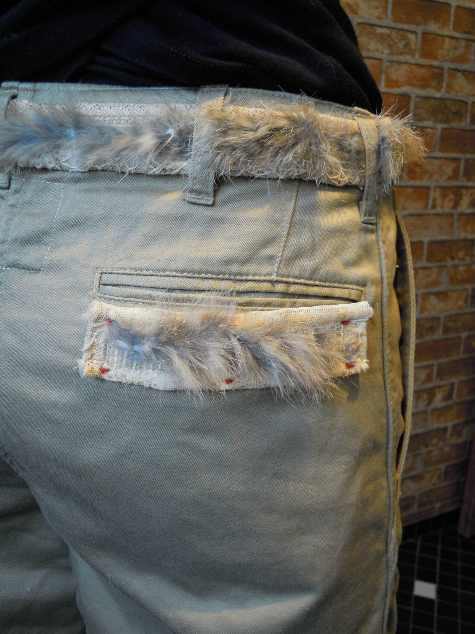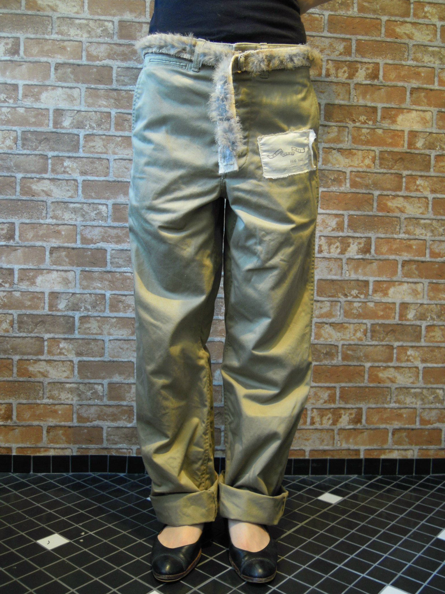 ちのぱん☆前回大好評だったチノパンに新しいバージョンが登場しましたよ今回はファーベルト付きです後ろのポケットにも・・・チラッとREDのハンドステッチが可愛いですこれは欲しいーーー通販希望の方はChaos BohemiaHPから