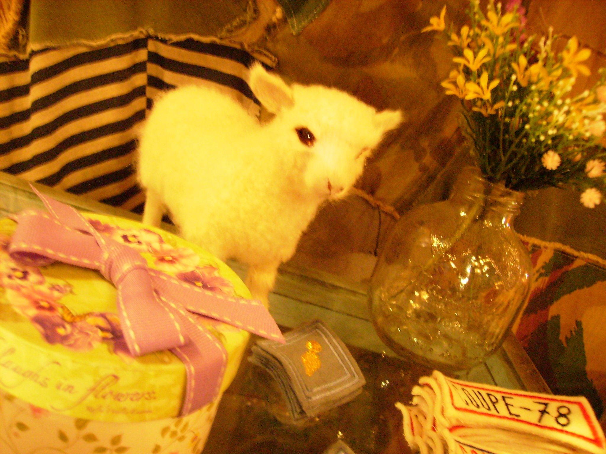こんにちは~♪展示会もやっと終わり。少しゆったりとしているカオスへ。こんな可愛い仲間がっ♪『子ひつじ』です☆真っ白で毛むくじゃらが可愛いらしい☆カオスボヘミアのお店にはなぜか動物が多いのです!来店された際には店内見回してみてくださっ♪どこかに隠れています☆