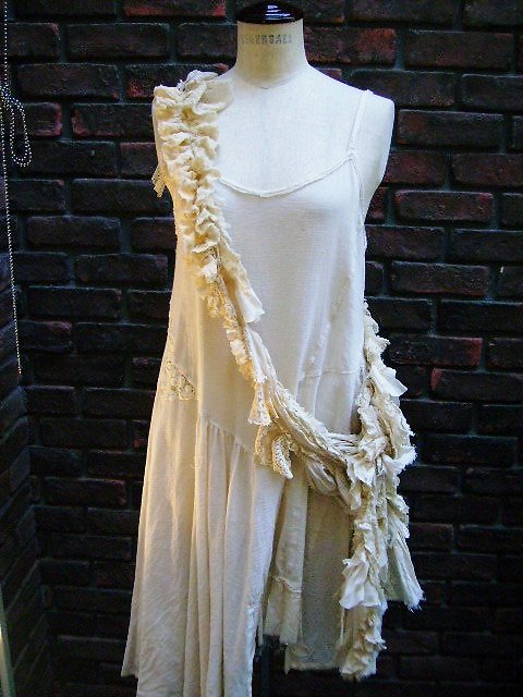 右肩から2メートルほど長いレースのパッチワークにフリルをあしらった