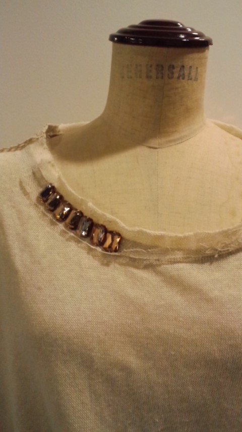 キラキラ☆ニットにキラキラが付いた可愛いアイテムが出来上がりました☆このキラキラもともとシルバーだったんですが、特別にブロンズに染めてもらったんですよー♪特別っていいですよね☆☆☆通販希望の方はChaos BohemiaHPから