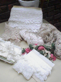 新しいレースたち今回また、レースを取り寄せました。日本にはない、可愛いレースたちです。写真のものはごく一部です。もっともっといっぱいあります。この子達がどんなお洋服になるのか、いまからドキドキワクワク!今回はフリンジが多いのですが、見たことのないような形のものばかりでした!!今から楽しみです!!!