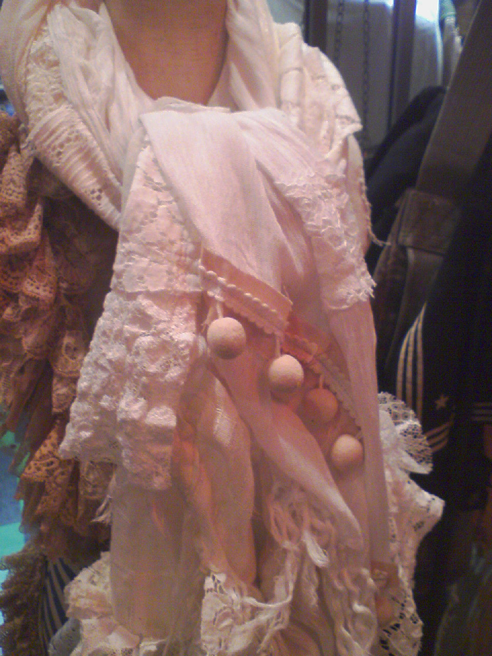 新作ストールをちょいと本日新作ストールを作成中。春先に使える大判のストールです。清楚な感じがグッド。これまでどおり、レースをふんだんに使用しております。もうすぐこの子もお店に並びますよー。ふんわりボリュームがなんとも可愛いですよ!これを紅茶でちょっと染めてます。乾燥後が楽しみ!!写真は染める前ですー!!