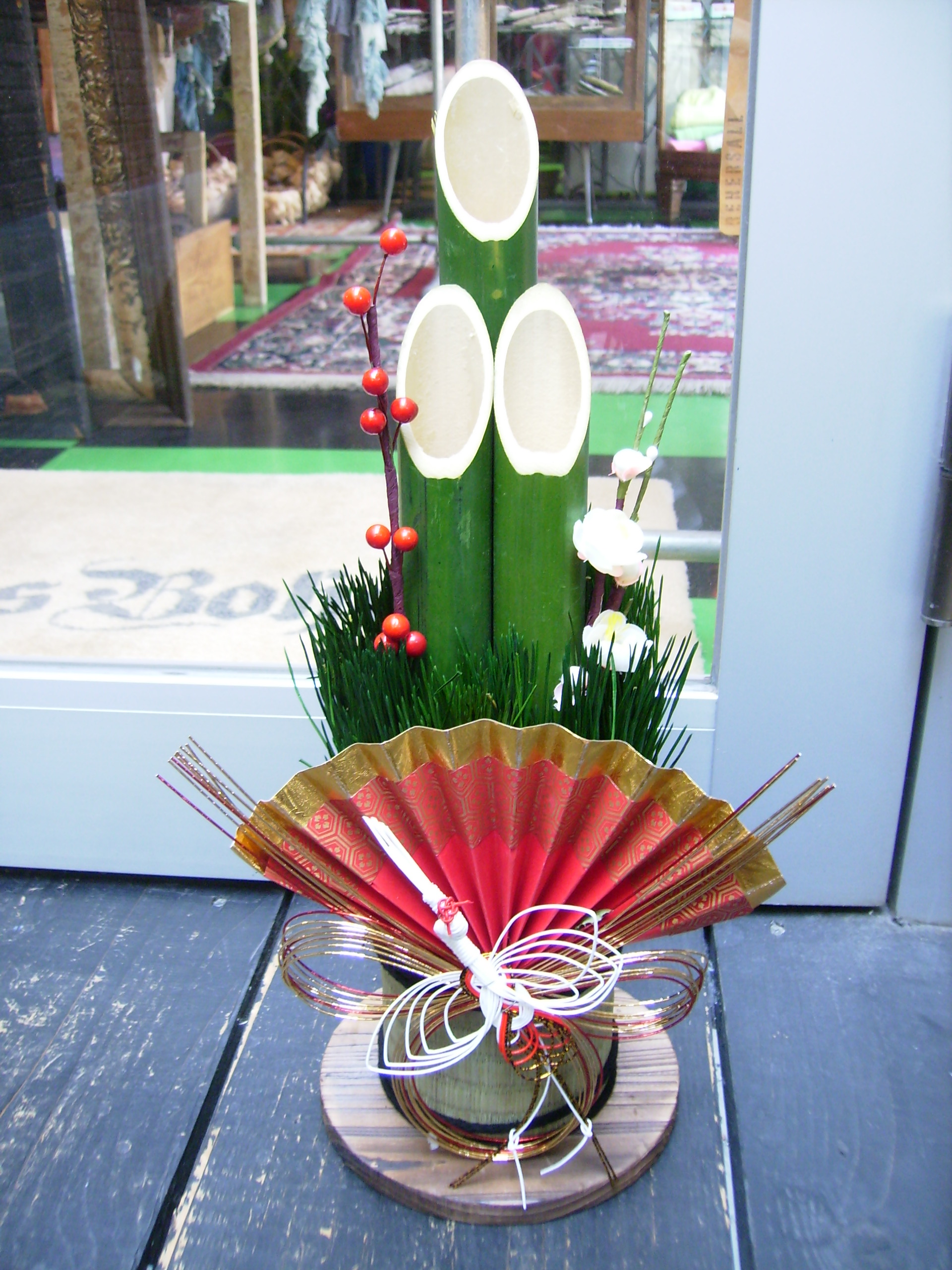 師走。。クリスマスも終わり2008年もあと5日となりました!!街を歩くと1日前まではイルミネーションでピカピカしていた明かりも消え年末にむけての門松やしめ縄のお飾りが目立つようになってきました。カオスでも早速、門松を表に飾ってみましたぁ~。本当に足早に過ぎていった12月。1年中、工房ではミシンなどフル稼働で動いて頂きました。年末の大掃除は念入りにピカピカにしないといけないですねっ~♪