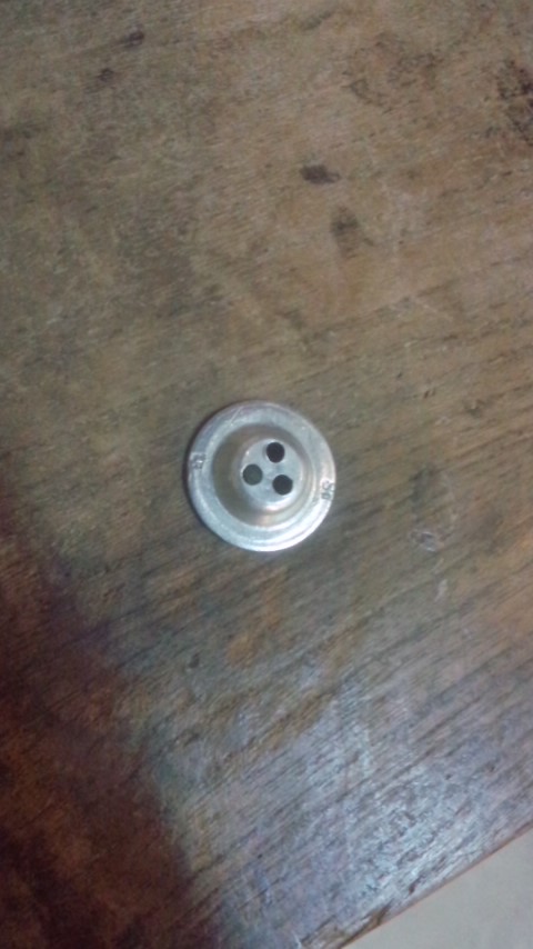 ボタン☆この頃大活躍なのが、このボタン☆☆☆軍物のテントのボタンなんです♪2つ穴や4つ穴のボタンはよく見ますが、3つ穴は珍しいですよね♪シルバーの色味も1つ1つ違うので味があります♪どのアイテムに隠れているかぜひ探してみて下さい☆☆☆気になる商品がある方はこちらをクリックしてください。通販希望の方はChaos BohemiaHPから