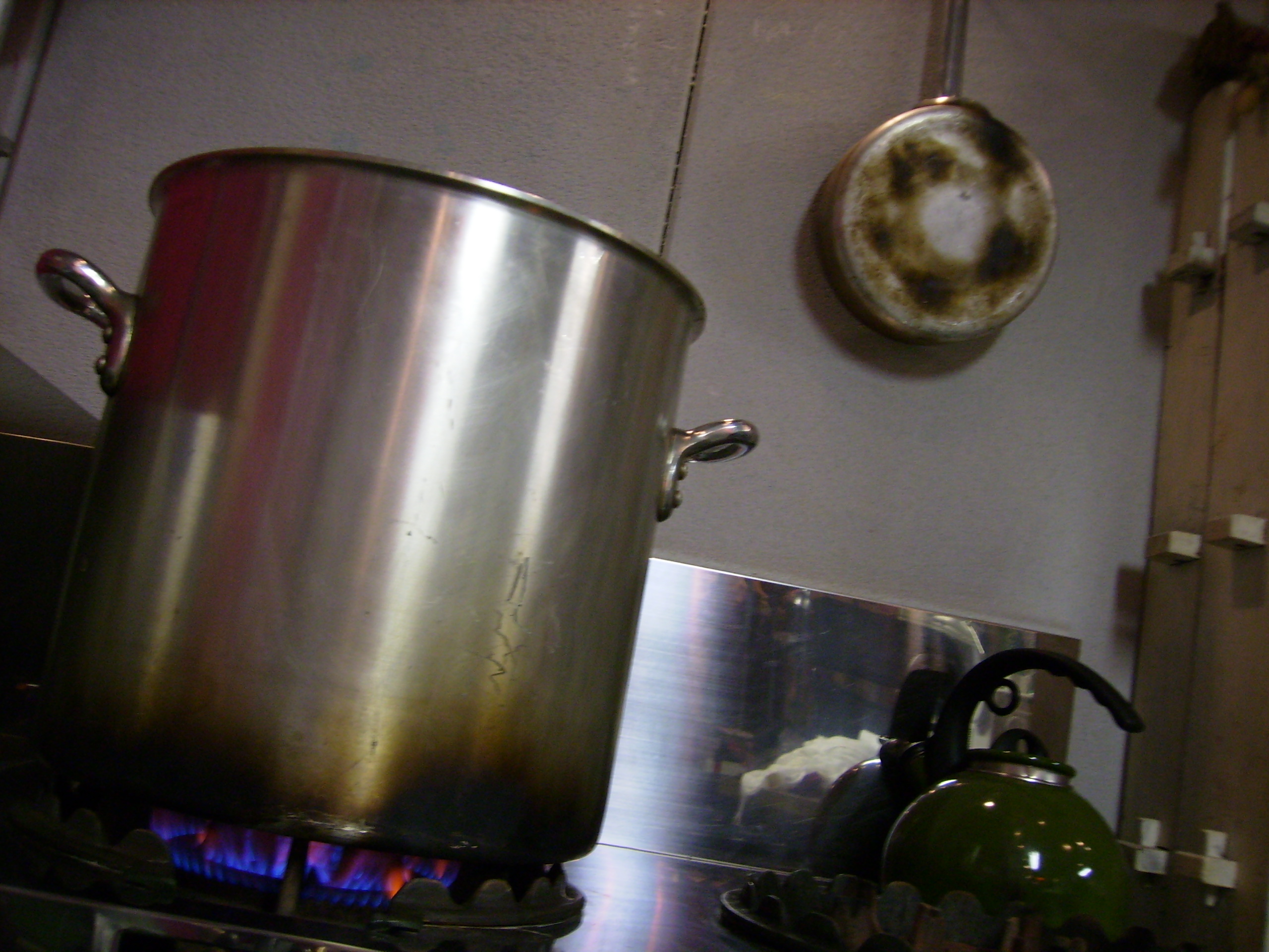 真っ黒!紅茶染めをしよ~。とふと、鍋に目をやると、火が当たる場所が真っ黒です!使い込んで年季が入ってきました。良い感じになってきました♪♪お店がOPENする前からこの方は居ますので、ん~~半年以上!毎日使わないことがないくらいに私達お世話になっております。時には一日3,4回頑張ってもらっています!!この方は染めだけのために生まれてきたようなものです。なので、頑張ってもらった後は、綺麗にすることは欠かさずに使わせていただきます!明日からもヨロシクなっ!鍋!!そしておやすみZzz。