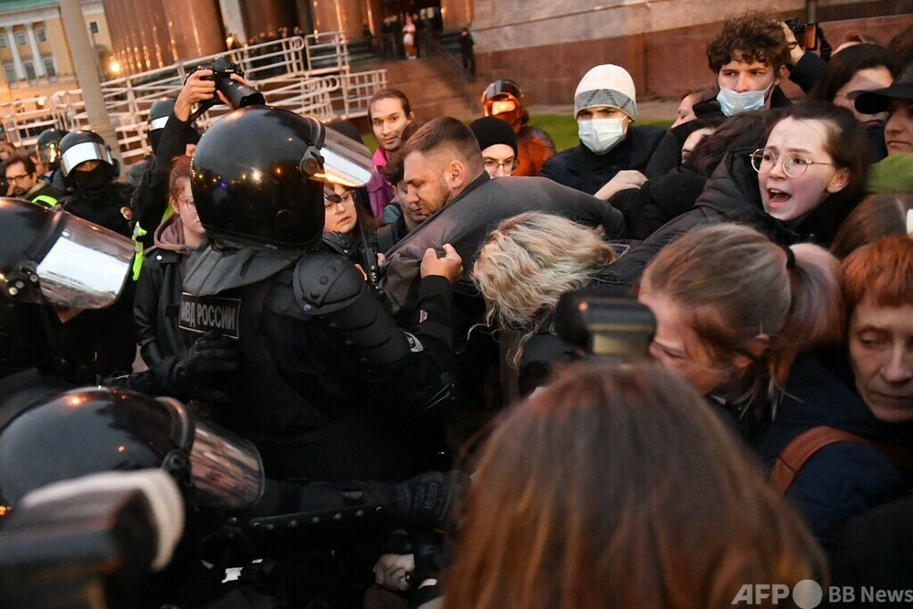 ロシア各地で動員反対デモ 1300人以上逮捕【9月22日 AFP】ロシアのウラジーミル・プーチン(Vladimir Putin)大統領がウクライナ侵攻のために予備役を部分的に動員すると発表したことを受け、同国各地で21日、抗議デモが行われ、1300人以上が逮捕された。www.afpbb.com