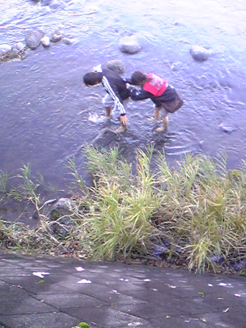 写真は12月に川に入る会長殿とPAZ氏