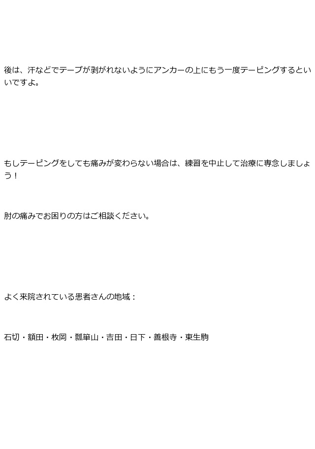 バレーボール、肘の痛み(内側)とテーピング方法 | 石切宮田整体院ブログ