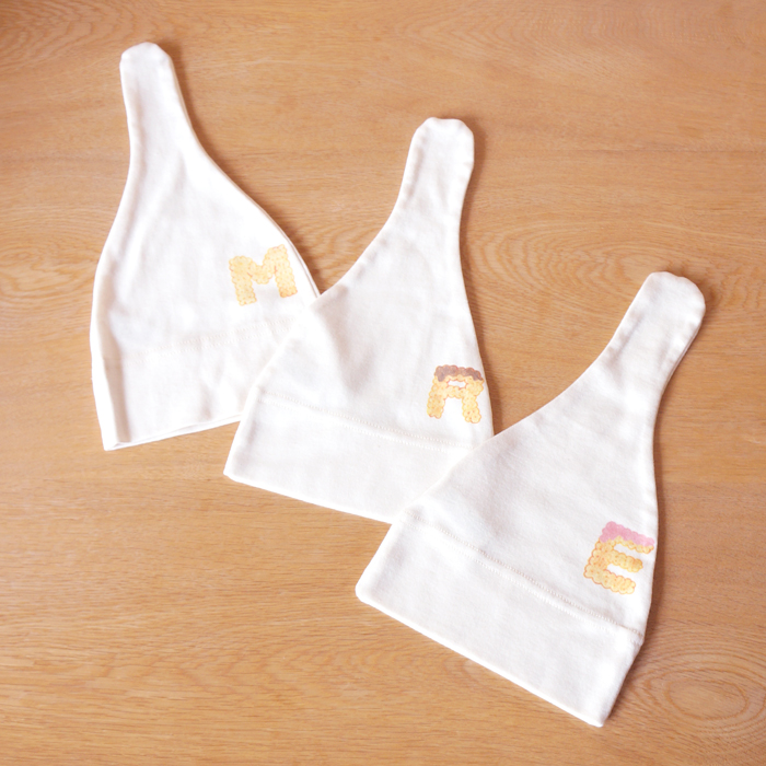 お揃いのベビービブ(スタイ・よだれかけ)とベビーキャップもありますよ♪