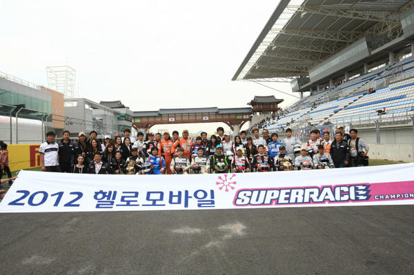 訳)2012シーズン、スーパーレースと一緒にしてくれた国内最高のドライバーらとF1メインサーキットで団体写真? Let me show you my family of 2012:) pic.twitter.com/vNXNDWgB