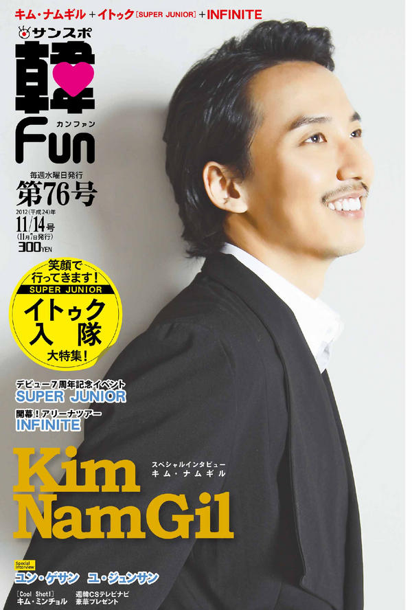 11月7日発売の韓Fun第76号の表紙をアップします! 「赤と黒」でおなじみのキム・ナムギルさんです。単独インタビューでもたっぷり語ってくれました。ご期待ください(^^)/ pic.twitter.com/ZSP8akxf