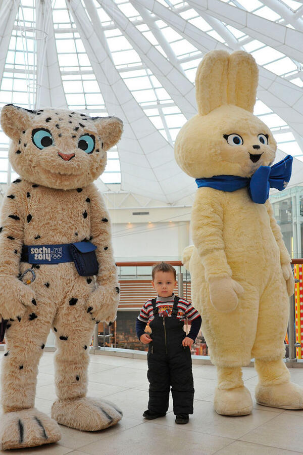 A young @Sochi2014 fan meets the mascots (c)Sochi2014 #olympics pic.twitter.com/YGTNkH8sN8