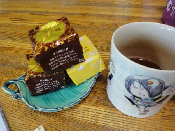 今日のおやつ@水木プロ。川越ポテト&川越ポテトショコラ。二つ並べて写真を撮ろうとしたら、水木しげる先生が、もう一個積んでくれました。(倉ぼっこ) pic.twitter.com/XsxQTsFCWn