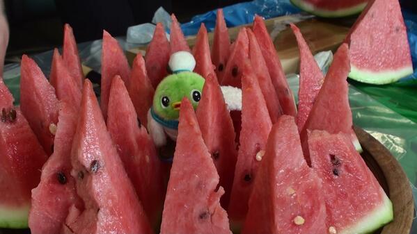 本日、鳥取のおいし~い大栄スイカが初出荷!大阪や東京などへ運ばれたよ~♪大好きなすいかに埋もれてみた~(○´∀`)ノ゛あ~幸せ~(*´∀`*)ノ~☆ #tottoriken pic.twitter.com/LJm6SZmAdj