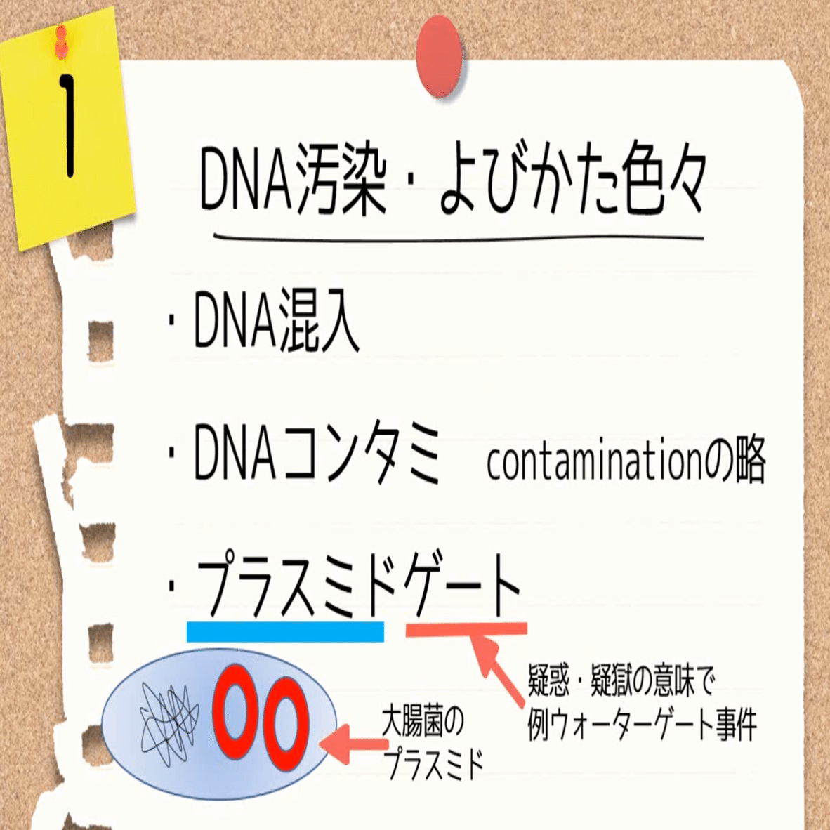 ではまず1つ目、「DNA汚染とはなにか」ですが、呼び方が実はいろいろありまして、「DNA汚染」のほかに「DNA混入」とか、「DNAコンタミ」とも言います。