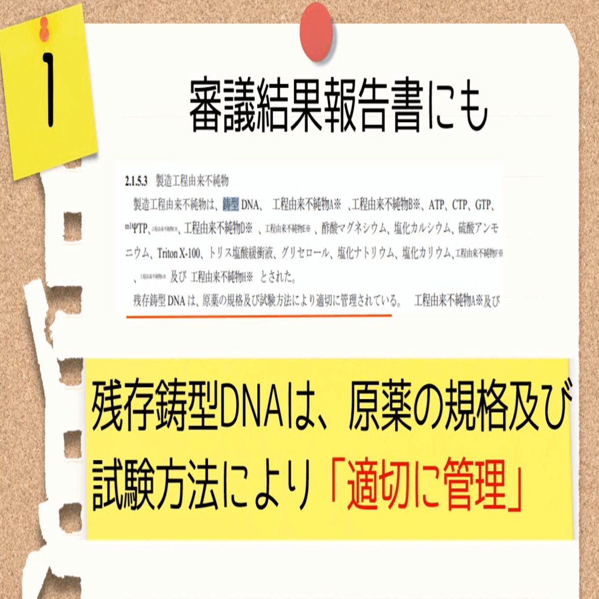 ですから厚生労働省もPMDAも、「鋳型のDNA、㋻㋗㋠㋞由来のDNAは適切に管理する必要がある」という認識はもっているということです。