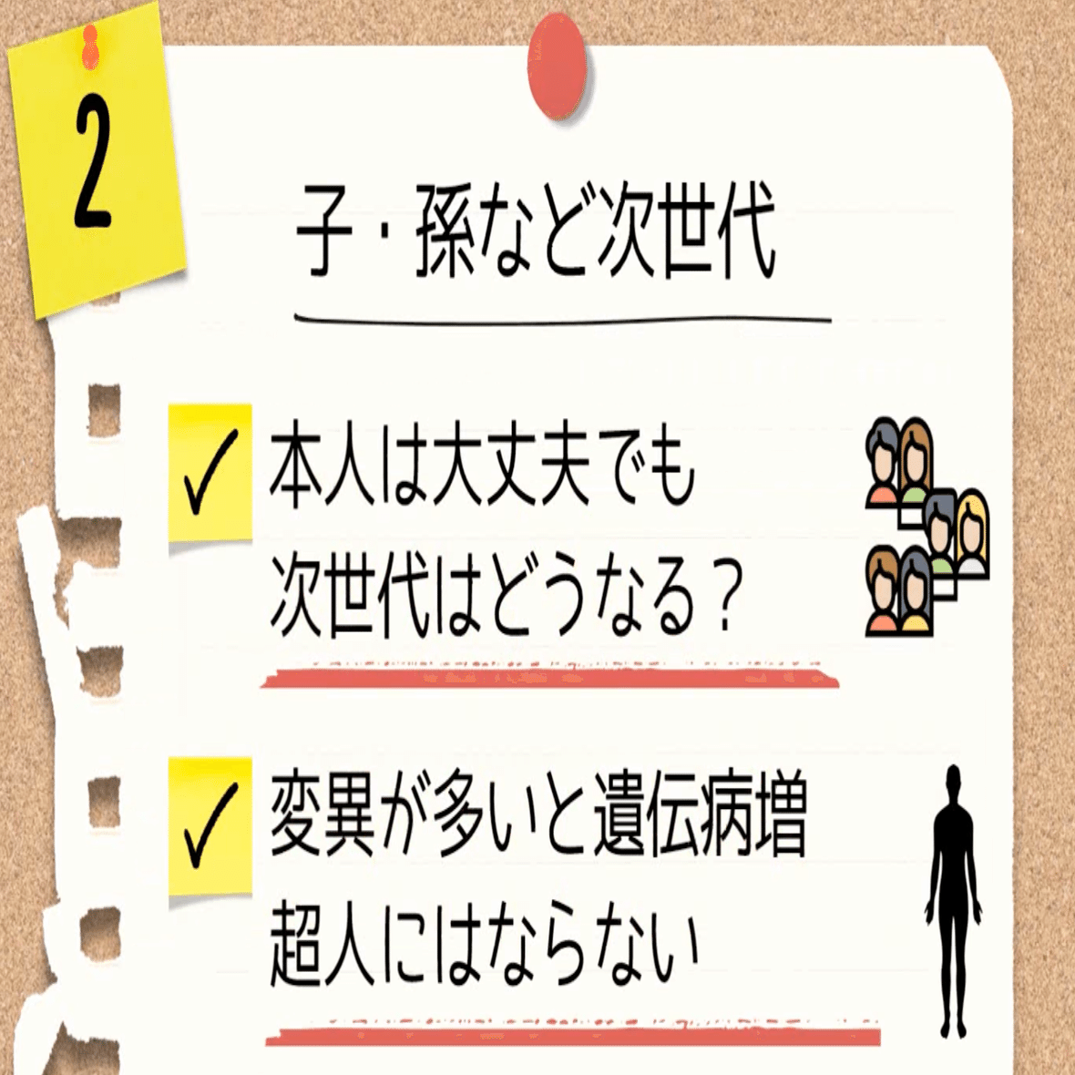 変異が多いと遺伝病などが増えるので、病気が増えたりとか寿命が縮まったりという懸念もあります。