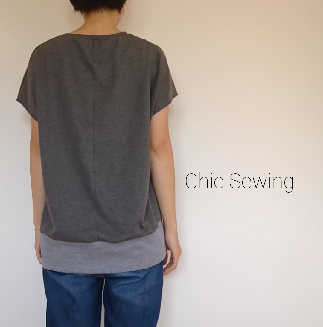 サンプル:ゆるっとTシャツ②Rick Rackさんのパターン使用やっと納得できるのができた!衿ぐりをクルーネックにアレンジ。これも袖分が足りなくてフレンチスリーブ(笑)しかも後ろのリブ分も足りなくて別の布(^o^;)これはこれで可愛いし、好き(*≧з≦)長袖のボーダーTシャツと合わせてもいいね♪