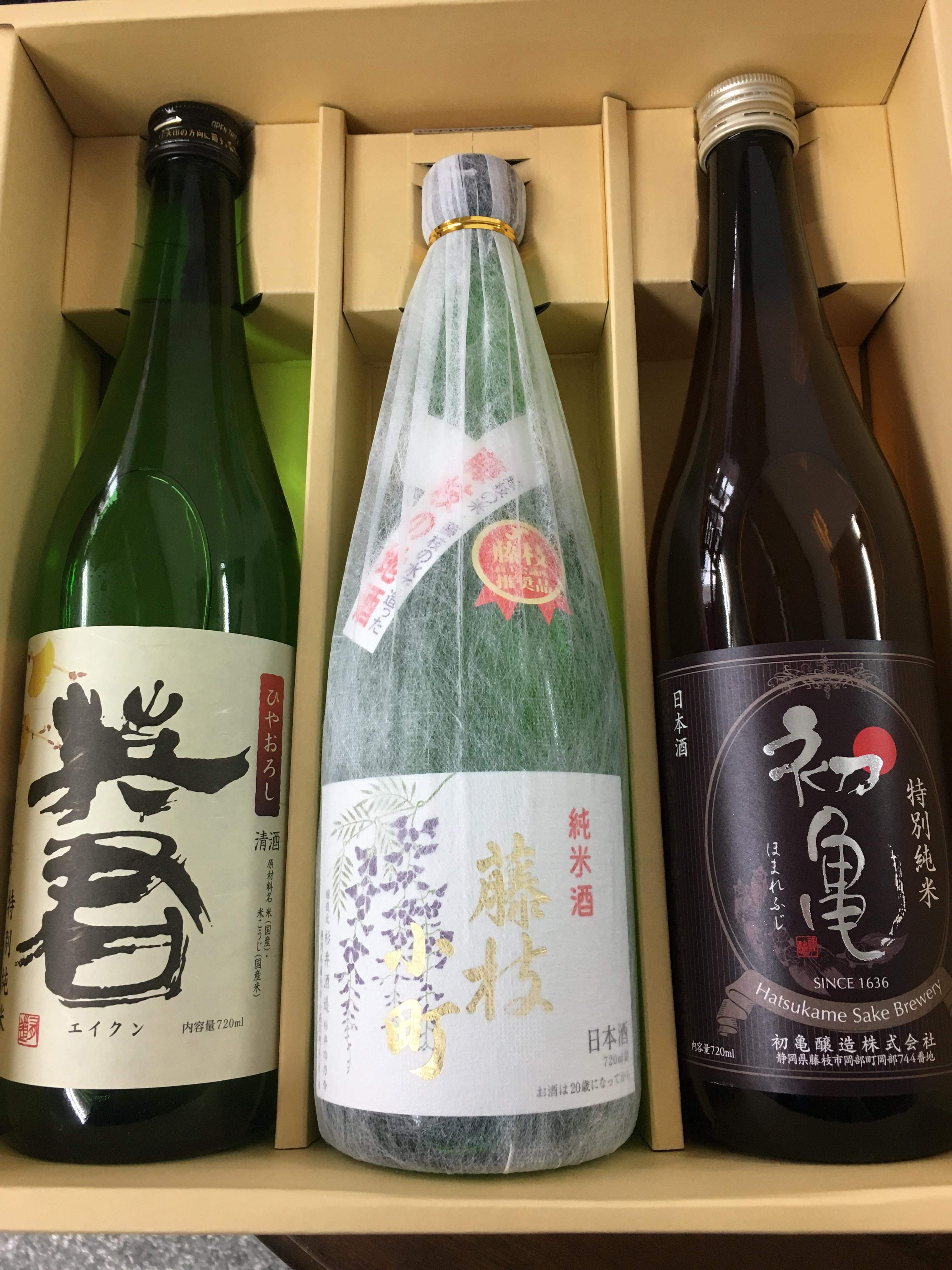いつも子供達にオモチャを贈ってくれる、親戚の叔父さん達へのお礼に、藤枝のお酒を送りたいと思っていたんです😊
