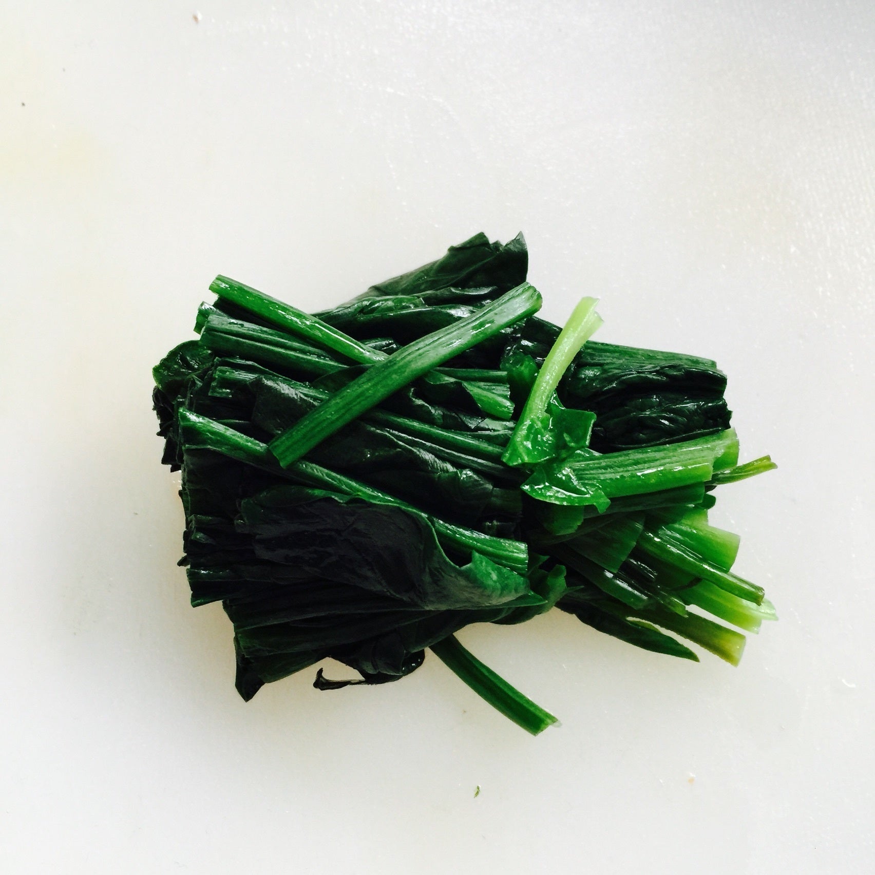 ②糸こん、ほうれん草を軽く茹で、食べやすいサイズに切ります。糸こんもほうれん草もしっかりと水気を切ってね。