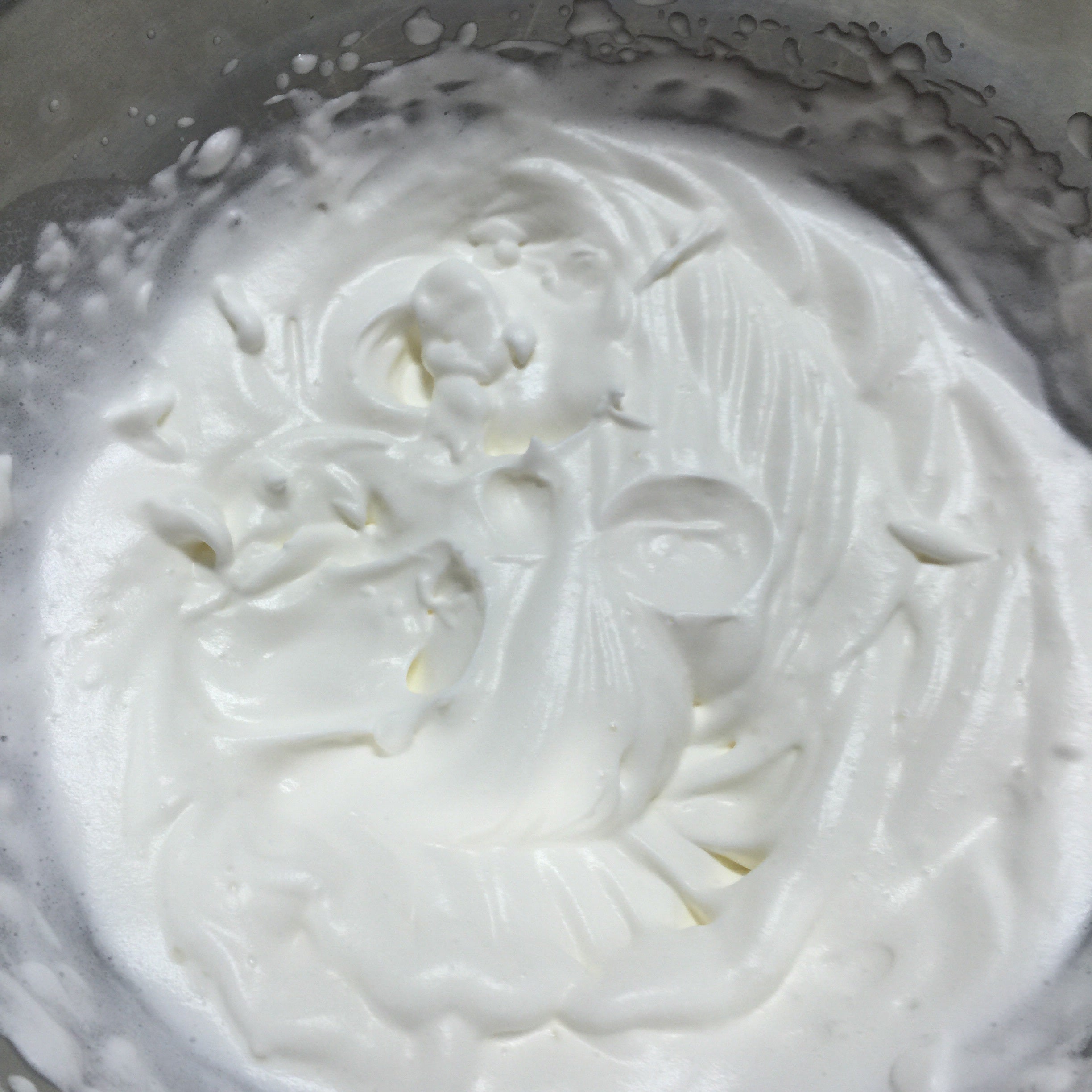 ①生クリームに砂糖を加えて7~8分立てに泡立てます。