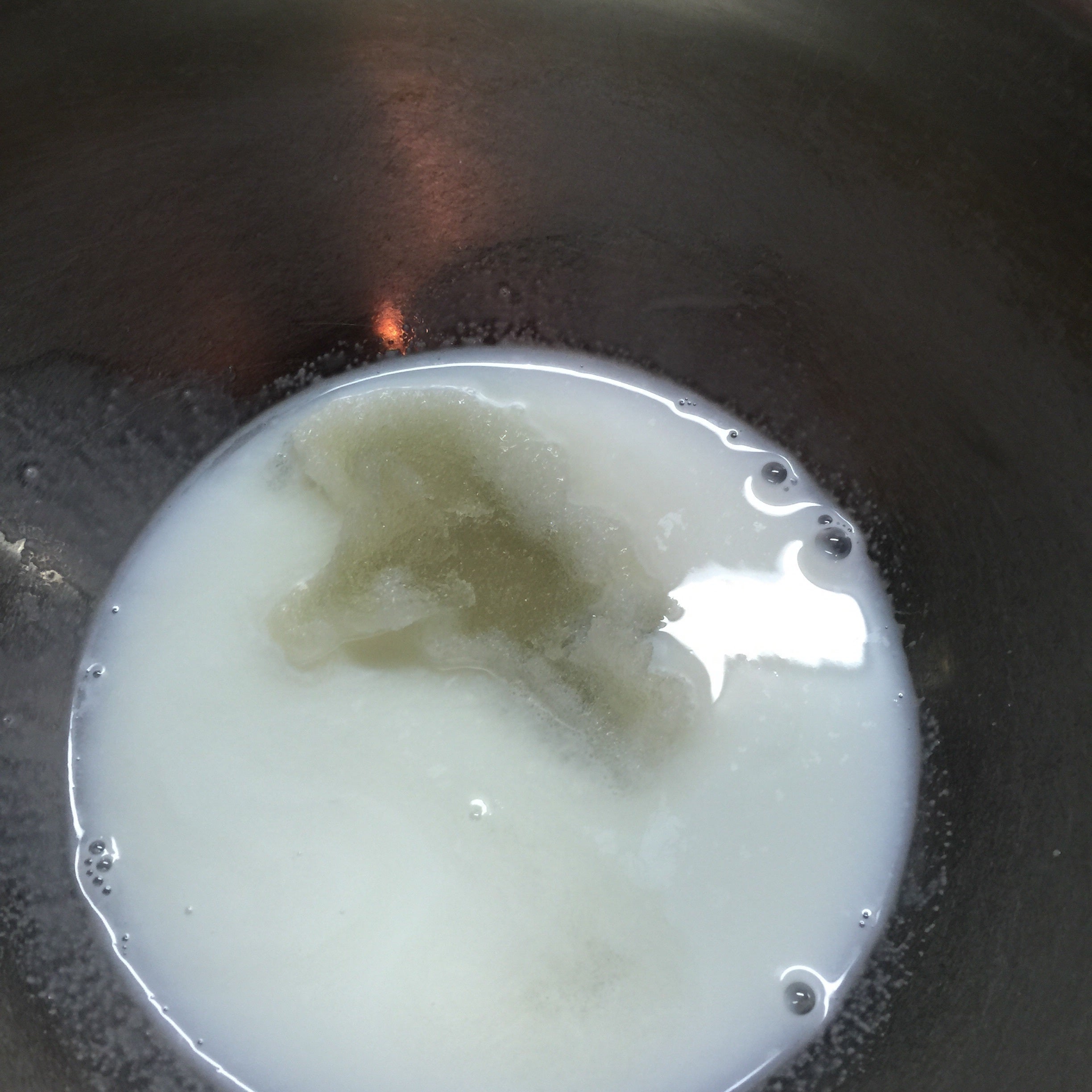 ④ボウルの牛乳にゼラチンを加えて良く混ぜてゼラチンを溶かします。