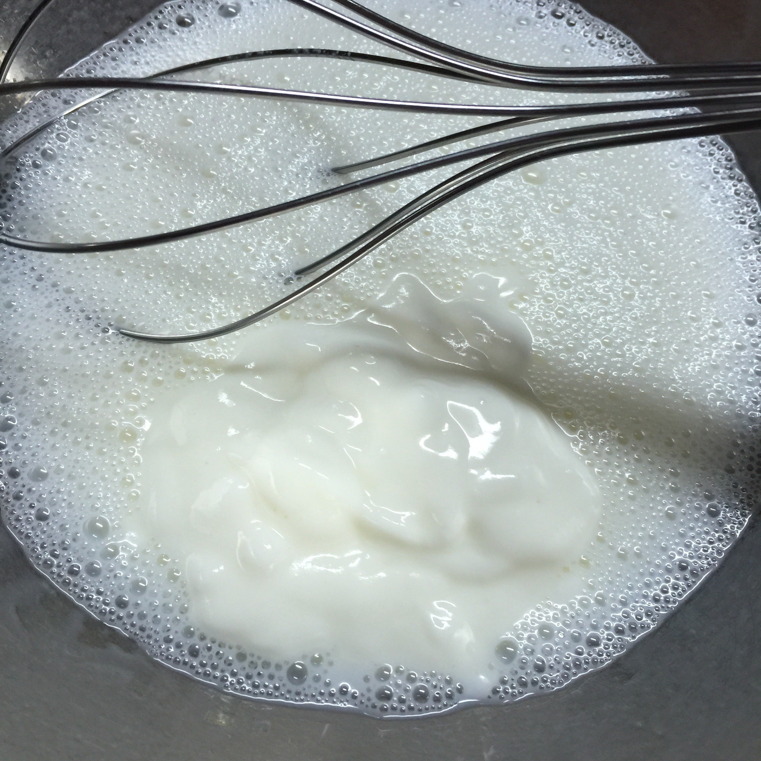 ⑥ヨーグルトが入ったボウルに生クリームを加えて丁寧に混ぜます。